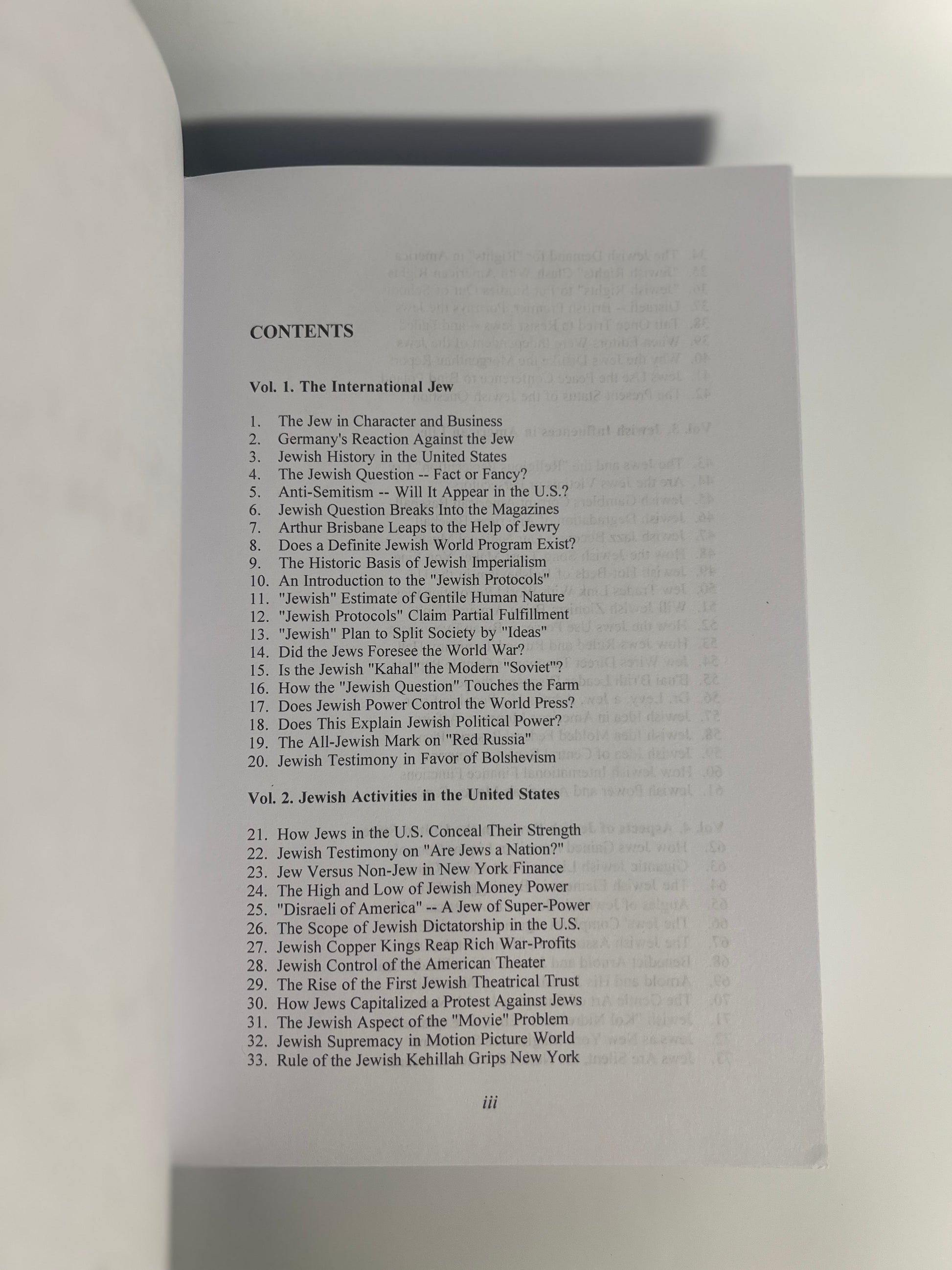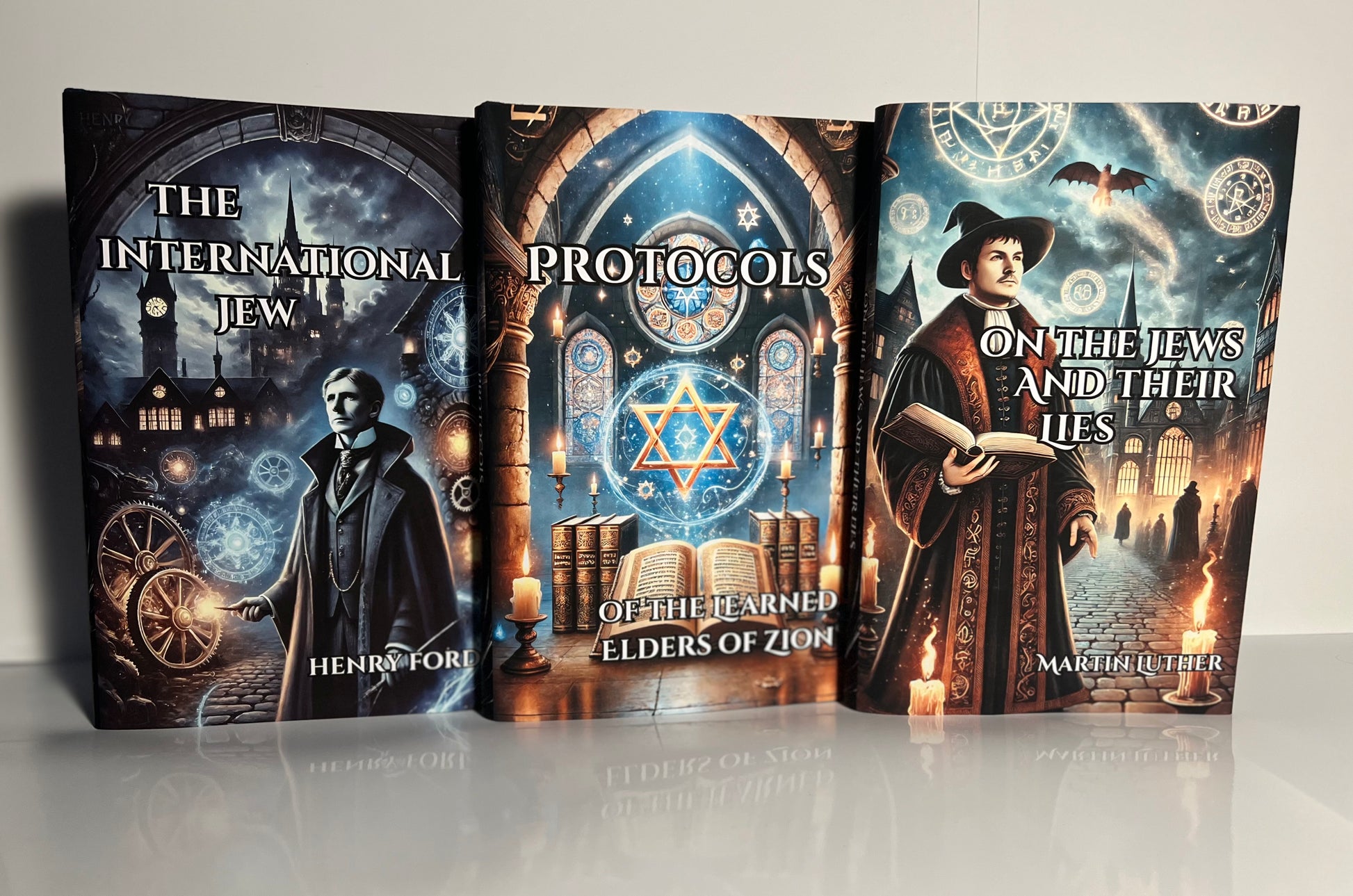This three-volume hardcover set contains reproductions of three historically significant texts—The International Jew, The Protocols of the Elders of Zion, and On the Jews and Their Lies.