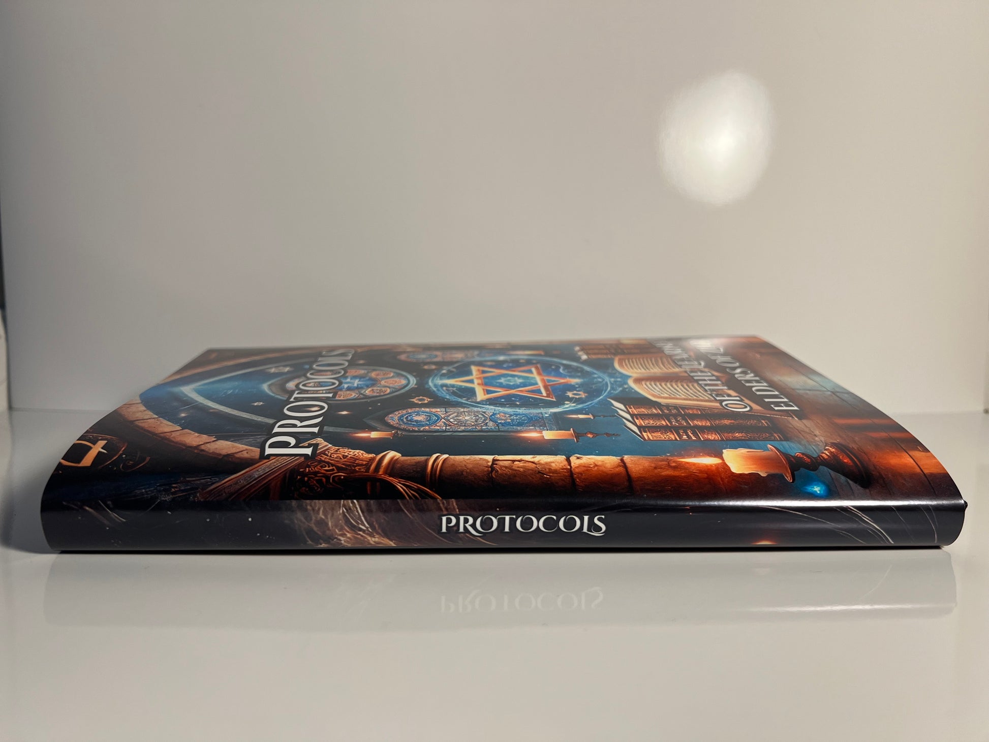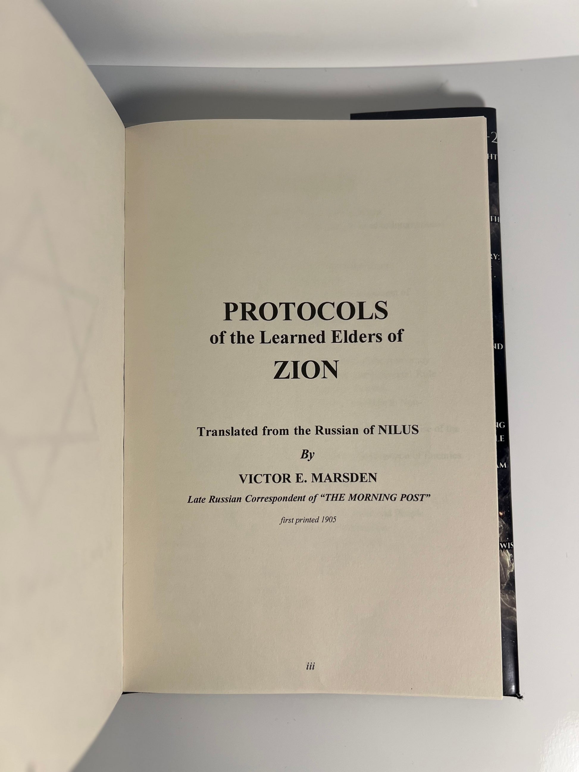 This is a custom-designed and custom-bound hardcover edition of The Protocols of the Learned Elders of Zion.